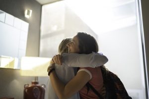 Grandmother and granddaughter embracing
